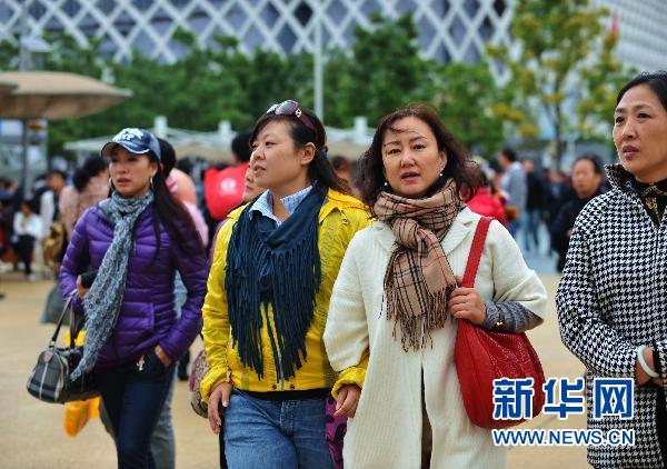 10月26日,游客在上海世博園參觀游覽。當日,上海氣溫驟降,最高氣溫降至15攝氏度,但廣大游客觀博熱情不減,紛紛穿上厚衣服來到世博園參觀游覽。截至當日21時,入園人數達30.87萬人次,上海世博會累計參觀人數達到7108萬人次。新華社記者張國俊攝