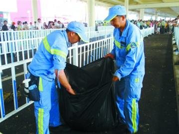對于游客及媒體反映過的沙特館排隊區(qū)垃圾遍地的問題,鐘師傅也很無奈:“我們每天單掃沙特館的排隊區(qū)就要掃四五遍,掃出的垃圾至少可以裝滿30多只大垃圾桶。”