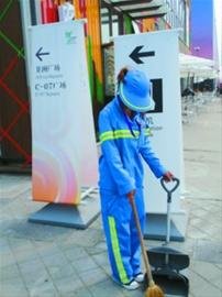 沙特館“清道夫”:排隊區(qū)每天清掃四五遍