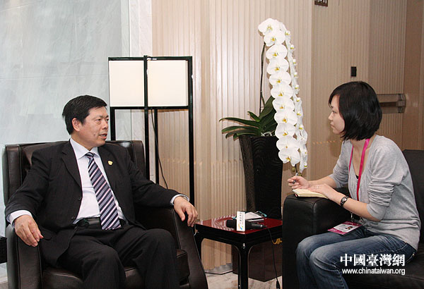 臺灣館館長葉明水在開館一周之際,接受中國臺灣網獨家專訪。(中國臺灣網 鐘寶華 攝)