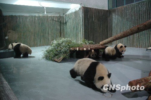 2010年1月5日,由臥龍中國保護(hù)大熊貓研究中心精心遴選的10只“世博熊貓”經(jīng)空運(yùn)抵達(dá)上海,集體搬入上海動(dòng)物園的新家。憨態(tài)可掬、活潑可愛的“世博熊貓”吸引了眾多關(guān)注的目光。屆時(shí),海內(nèi)外游客在參觀上海世博會(huì)的同時(shí)還可領(lǐng)略中國大熊貓的風(fēng)采。 中新社發(fā) 阿凱 攝