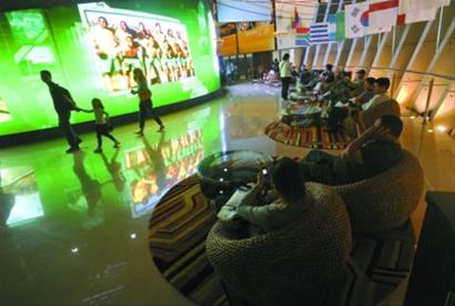 在館內(nèi),兩塊3D投影大屏幕已經(jīng)就位,讓游客可以看到身臨其境的3D世界杯直播,其信號(hào)來(lái)自南非的電視臺(tái)。今晚,這塊屏幕會(huì)高清直播開(kāi)幕式和首場(chǎng)比賽。而在“球吧”門口,便是世界杯倒計(jì)時(shí)碑,一分一秒地計(jì)算著距離世界杯到來(lái)還有多少時(shí)間。
