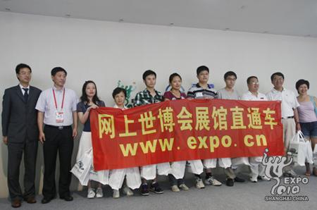 網(wǎng)上世博會(huì)“展館直通車(chē)”幸運(yùn)網(wǎng)友在上汽集團(tuán)-通用汽車(chē)館內(nèi)合影