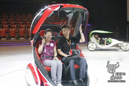 幸運(yùn)網(wǎng)友王宛露(左)試乘EN-V概念車(chē)
