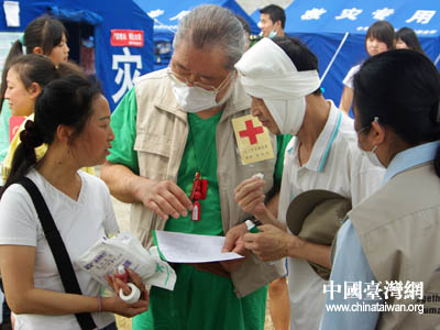 臺(tái)灣紅十字組織醫(yī)療隊(duì)檢查受災(zāi)群眾