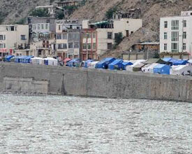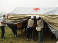 臺灣紅十字組織醫療隊在搭建醫療帳篷