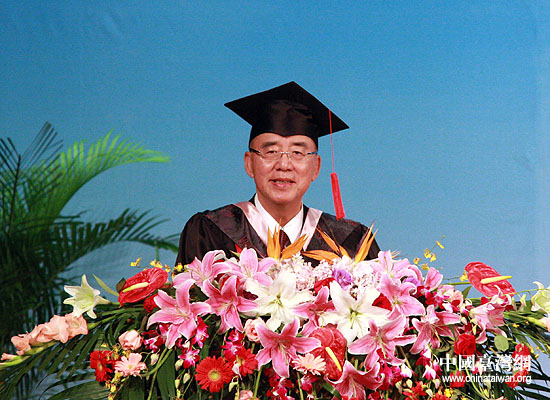 中國科學院院士、南京大學學位評定委員會副主任吳培亨宣讀了授予吳伯雄先生法學名譽博士學位決定。由南京大學校長、校學位評定委員會主任陳俊向吳伯雄頒授法學名譽博士學位證書、挑正流蘇。(記者 鐘寶華)