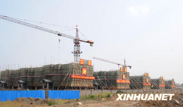 四川省綿竹市漢旺鎮(zhèn)在汶川地震中嚴重受災。如今,經(jīng)過江蘇援建者近一年的努力,一座漢旺新鎮(zhèn)正在崛起。新華社記者陳燮攝