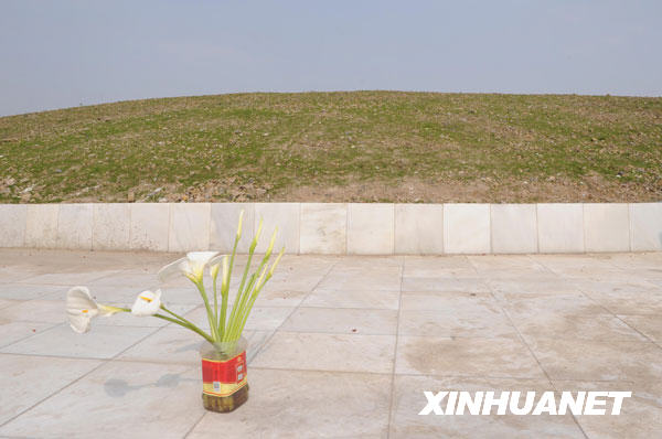 2008年5月12日,綿竹市漢旺鎮(zhèn)在地震中被摧毀,近5000同胞遇難,他們中的許多人,就埋在鎮(zhèn)后的一個山頭上。當?shù)卣谶@個可以俯瞰漢旺鎮(zhèn)全貌的山頭,為遇難同胞修建了集體陵寢,讓逝者得以安息,讓生者有一個緬懷紀念的場所。在汶川地震周年到來之時,這個陵墓將基本建成完工。新華社記者陳燮攝