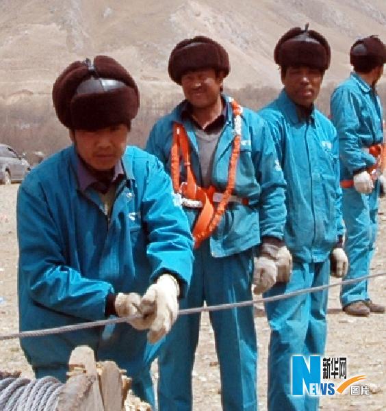 在上桿作業(yè),留下的只是背影(4月18日攝)。 流星的永恒,是它曾以熾烈燃燒的生命照亮夜空。 42歲的杜金玉,就是這樣一顆流星。這個憨厚、老實、平凡,一輩子沒有離開過青藏高原的送電工人,在2010年春天驟然黑暗的玉樹之夜匆匆劃過……他的生命之火就這樣靜靜地熄滅了,為這片災難中新生的土地留下了燈火輝煌的一片光明。新華社發(fā)(何青 攝) 》》》詳細