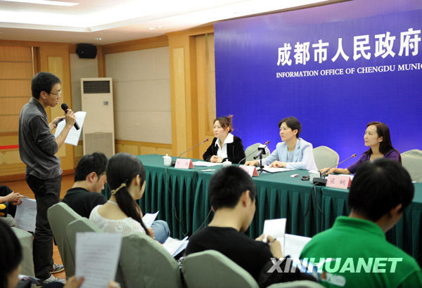 5月14日,一名記者在成都市人民政府新聞發布會上提問。新華社記者陳燮攝