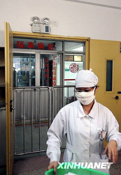 5月22日,一位醫(yī)務(wù)人員從廣州市第八人民醫(yī)院收治廣州市甲型H1N1流感病例的隔離病區(qū)走出。