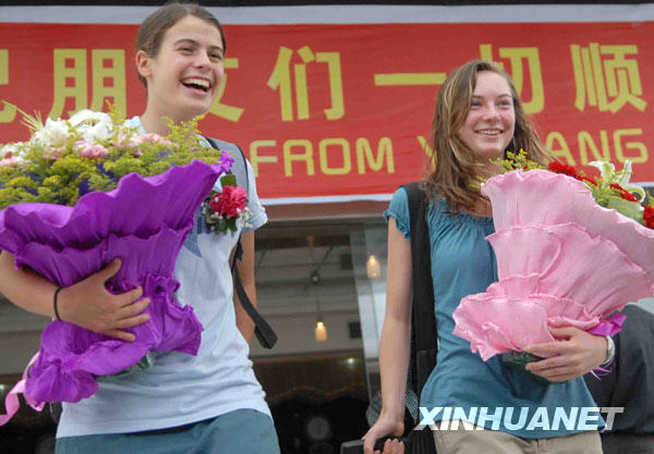 6月18日,在湖北宜昌,甲型H1N1流感確診患者密切接觸者解除集中隔離醫學觀察。來自美國的某中學生旅游團在宜昌市期間,有數名團員因出現流感樣癥狀被收治入院,其余團員于6月11日在該市開始集中隔離接受醫學觀察。6月18日下午,曾與甲型H1N1流感確診患者有過密切接觸,在宜昌接受集中醫學觀察的82名人員,全部順利完成隔離醫學觀察,結束隔離。新華社發(王永勝 攝)