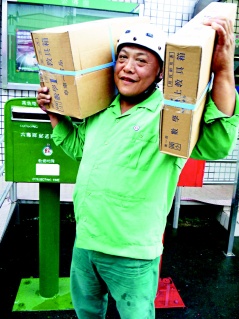 高雄縣六龜郵局郵差洪英俊天天扛著10多公斤郵件送往災(zāi)區(qū),一趟山路就要走4個(gè)多小時(shí)。圖片來(lái)源:臺(tái)灣《聯(lián)合報(bào)》