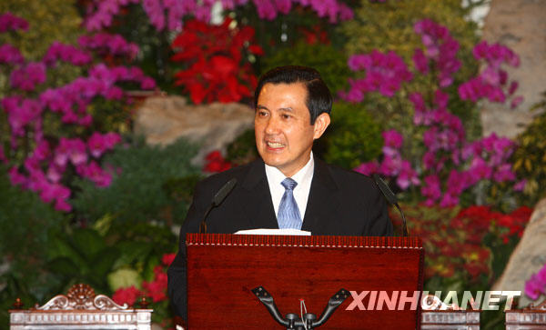 11月6日,馬英九在臺北賓館會見海協會會長陳云林一行。這是馬英九致辭。新華社記者 邢廣利 攝