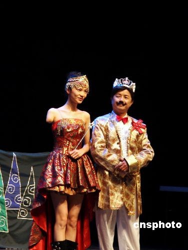 11月30日晚,臺灣第十二屆“弦月之美”身障人士才藝大展在臺北“國父紀念館”舉行,被臺灣人稱為“斷臂美女”的鄧美芳(左)在默劇中飾演白雪公主。中新社發 周兆軍 攝