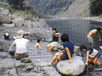 秀巒部落位在白石溪與泰崗溪匯流處,向來以溫泉、楓紅和溪谷景觀著稱。 進(jìn)入村落前,便可看到“控溪吊橋”高懸白石溪兩岸,走起來十分刺激;吊橋旁的溪中有塊巨巖,狀似軍艦鳴笛入港,故名軍艦巖。秀巒溫泉便在上游不遠(yuǎn)處,水量不大,泉溫約攝氏45度,屬弱堿性碳酸泉。泉水自溪邊亂石中汩汩流出,居民疊石成池,在青山綠水間泡溫泉,頗富原始情調(diào)。 溫泉四周的山巒楓槭甚多,每逢深秋、寒流降臨,山頭迅速披上火紅的外衣,連冬陽也為之失色,稱之“楓紅的秀巒”,甚為貼切。在山友間久享盛名的霞喀羅古道,是秀巒賞楓的極佳景點(diǎn),古道由秀巒經(jīng)錦路、養(yǎng)老、白石,翻過霞喀羅大山鞍部,按石鹿古道通達(dá)清泉,途中可欣賞到成片的楓香和其他變?nèi)~木。 桂竹是北部泰雅族的重要農(nóng)產(chǎn),竹屋自然便成了泰雅族人的建筑特色,村中尚保存著數(shù)幢原始竹屋。除了骨架為杉木外,舉凡墻面、屋頂、門窗等皆以桂竹為材,由于仍沿用傳統(tǒng)的建筑方式,使得秀巒的泰雅竹屋,流露著一股原始古樸之美。 乘車風(fēng)向標(biāo): 無公車直抵,可自竹東包計(jì)程車前往。