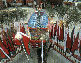 <%beginrecord%><%endrecord%> 二龍村為礁溪鄉(xiāng)東緣的一個小村,源自五峰旗瀑布的二龍河(得子口溪)流經(jīng)此地,昔日噶瑪蘭人居住于此,每戶人家后院直通河道,數(shù)度發(fā)生孩童落水溺斃的事件,于是噶瑪蘭人以劃船競渡的方式驅(qū)逐水中精怪。后來漢人移入混居,將此習(xí)俗與端午節(jié)結(jié)合,延續(xù)至今,已有近兩百年歷史。 二龍村的龍舟賽由上游的淇武蘭與下游的洲子尾兩莊相互競技,兩莊各有專用龍船,平時置于“龍船厝”內(nèi)細(xì)心維護(hù),端午節(jié)上午由年高德勛者帶領(lǐng),以古禮祭拜點(diǎn)睛、祭拜河神,才開始正式競賽。 競賽方式與一般的龍舟賽不同,不設(shè)發(fā)令員、計時員與裁判,兩村選手在起點(diǎn)前約40公尺處立下木椿作為起點(diǎn)標(biāo),在大家同聲吆喝下以站立姿勢劃動船身至木椿處,若雙方覺得旗鼓相當(dāng)時便敲鑼示意,表示這次競賽算數(shù),但若有一方認(rèn)為對方搶劃,或沒有信心贏得勝利,就不敲鑼表示不算,要折回起點(diǎn)重新再來。因雙方認(rèn)定不同,故常常進(jìn)行了1個小時卻連一趟都沒有劃完。若雙方都敲鑼示意,則雙方搶奪置于終點(diǎn)處象征村泰民安、五谷豐登的平安旗,先拿下的一方即獲得勝利,但由于未設(shè)裁判,奪旗的先后也常有爭議,以至曾一度中斷,后終因世交之篤與歷史傳承,兩莊復(fù)又重掌船槳,熱鬧開鑼。