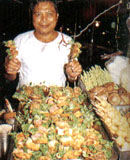 以羅東公園為核心的羅東小吃,集傳統(tǒng)與現(xiàn)代各家小吃于一體,日夜皆營,知名度頗高,是多數(shù)人走訪羅東必到之處。 作為木材集散地的羅東發(fā)展成為工商重鎮(zhèn)后,鎮(zhèn)上逐漸聚集商家、小吃攤,林場肉焿、崔記早點便是著名的食攤;近年來,隨著觀光事業(yè)的推進,羅東公園周邊的公園路、中山路一帶,更進而規(guī)劃為觀光夜市,店面整齊劃一,著實吸引不少人潮。 每至傍晚,夜市內成排的商家開始點亮燈火,而人潮也陸續(xù)涌入,夜市內幾乎都是小吃攤,蚵仔煎、擔仔面、虱目魚……都有著濃濃的鄉(xiāng)土味。雖名為夜市,但其實許多店家在中午,甚至早上就開始營業(yè),如知名的張秀雄咸米苔目即是,因此,不論何時到來,都有多種美味可供選擇。 隆新一串心 地址:興東路、民生路交叉口(羅東公園口) 營業(yè)時間:1700~2400 店內特色:一串心 一串心又名豆腐卷,是蘭陽地區(qū)特有的小吃。一串心即是將空心的油豆腐,填入煮熟的粉腸、香腸、豬肺或叉燒肉等主料,搭上蒜苗、韭菜等配菜,再以長竹簽串起。宜蘭賣豆腐卷的店攤不少,但就數(shù)羅東公園入口處的隆新一串心最知名。 林場肉焿 地址:中正北路109路 電話:(03)955-2736 營業(yè)時間:0800~1800 店內特色:肉羹 林場肉羹的好吃,賣的無非是40年的老經(jīng)驗,精挑的瘦肉、道地的做工,外加紅蕃薯粉這號大功臣,揉捏出來的肉羹,硬是外滑內嫩、貨真價實。 張秀雄咸米苔目 地址:公園路40號 電話:(03)954-7533,956-3468 營業(yè)時間:0600~1130 店內特色:咸米苔目、粉腸肉、黑白切 位于羅東夜市內,張秀雄咸米苔目賣的卻是早市。之所以能長賣40多年,主要在其獨到的選米、制作出彈性好、口感佳,且久煮不爛的米苔目,加上以純肉精燉的香醇湯頭,十足夠味。 崔記早點 地址:公正路37號 電話:(03)954-4481 營業(yè)時間:0400~1300 店內特色:煎包、豆?jié){ 店齡近40年的崔記早點,由于遵循山東口味、手工制作,不論豆?jié){、煎包、酥餅、燒餅,都是餡料好、味道佳的點心,其中尤以煎包最受顧客青睞。 |
