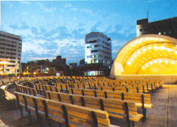 園內(nèi)的音樂臺是嘉義市中心最佳的戶外表演場所,造型采用露天拱型開放式,舞臺面寬2000公分,深度1670公分,臺前有六百個座位,地下室還設(shè)有演員化妝室。
