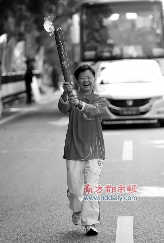 昨天的第一棒南欣是中國殘聯愛心大使和廣州亞殘運會愛心大使,她同時是一位歌唱家。在輕松完成首棒的傳遞后,被大批電視臺記者簇擁著的南欣難掩興奮激動地說:“之前從來沒想過能擔任首棒火炬手,剛才在火炬手投放車上等候時,心情已經很激動,但當我的手托起火炬時突然感覺很神圣。”