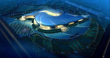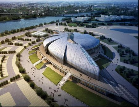 南沙體育館是亞運會武術(shù)比賽場館,因此在設計上場館也體現(xiàn)了中國武術(shù)的意境。南沙體育館的外殼分九個曲面單元,單元間片片層疊,并分為南北兩組以比賽大廳圓心為中心呈螺旋放射狀展開。這種富有動感的設計隱喻了中國武術(shù)的最高境界——“陰陽俱合,天人合一”。同時結(jié)合廣東海洋文化的特征,借鑒了富有肌理變化的“海螺”外殼作為造型設計的意向。南沙體育館主體鋼結(jié)構(gòu)部分采用了雙層環(huán)形張弦穹頂結(jié)構(gòu),主跨度達到了98米。