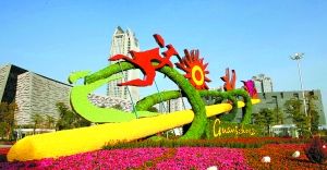 廣州花城廣場,鮮花扮靚迎亞運,抬頭可見“藍藍的天上白云飄”