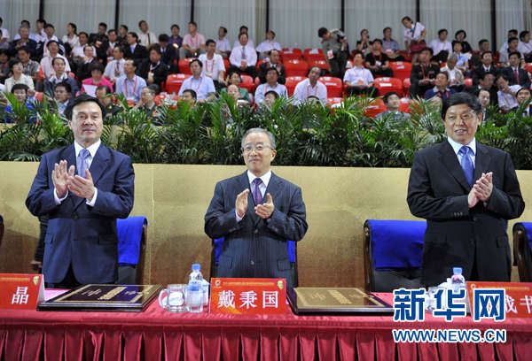 9月18日,第九屆全國少數(shù)民族傳統(tǒng)體育運(yùn)動(dòng)會(huì)在貴陽閉幕。國務(wù)委員戴秉國(中)出席閉幕式并宣布第九屆全國少數(shù)民族傳統(tǒng)體育運(yùn)動(dòng)會(huì)閉幕。新華社記者王鵬攝