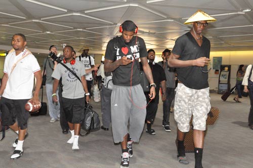 而應姚明邀請的密爾沃基雄鹿隊新秀詹寧斯(Bran don Jennings)、火箭后衛布魯克斯(Aaron Brooks)、曼斐斯灰熊隊中鋒塔比特(Hasheem Thabeet)等多名NBA球員,也在26日上午搭機抵臺。