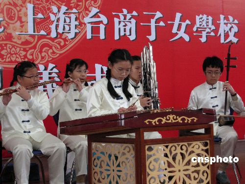 一月二十一日,上海臺商子女學校的學生在“兩岸學生才藝聯歡迎新年”活動上表演民族器樂。臺北縣秀朗小學的部分學生也專程赴上海參加該活動,與在上海的臺商學子共敘親情,交流藝技和學習心得。 中新社發 潘索菲 攝