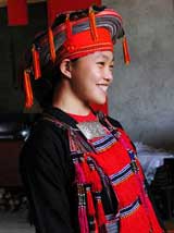 中國歷史上遷徙較多的一個民族,其先民一般認為是秦漢時長沙武陵蠻的一部分,或說源于“五溪蠻”。自隋唐開始,廣西瑤族由湖南和廣東等地遷入。到明代,廣西成為瑤族的主要分布區,主要聚居在金秀、巴馬、都安、大化、富川、恭城 6個瑤族自治縣,幾逯递^多,有盤瑤、過山瑤、頂板瑤、花籃瑤、白褲瑤、藍靛瑤、紅瑤、茶山瑤等稱謂,幾逵凶约旱恼Z言,屬漢藏語系苗瑤語族,其語言支系復雜,幾宓貐^一般通用漢文或壯文,沒有本民族文字。 瑤族的宗教信仰因地而異,有自然崇拜、祖先崇拜,也有圖騰崇拜。還有些地區信仰巫術和道教,幾宸课萁ㄖL格多樣,其中最具特色的是木樓。木樓依山傍水,前低后高,坐落方向不限。木樓群一般分為三層 :吊樓下為第一層,用于圈家畜;第二層住人;第三層儲存糧食和物品。木樓建造無須一根鐵釘,十分堅固。室內陽光充足,空氣流通。古有“瑤好五色衣裳”之稱,瑤族服裝常飾五色絲線的繡花 。瑤族婦女頭飾最為講究,有“龍盤”形、“A”字形、“半月牙”形等!褒埍P”形是把十多米長的繡花巾盤在頭上;“A”字形是指用繡花巾纏繞而成,上窄下寬,再系上各色絲絨線和彩色珠子;“半月牙”形是指將三塊“半月牙”型的銀牌置于頭頂上……,幾宄4⿲鬅o扣上衣,系腰帶。男子下身穿青褲,護綁腿。女子上衣圖案豐富多彩,有花、鳥、魚、蟲、幾何圖案、人物形象…… ,衣領有圓領、豎領兩種,下身穿布片裙、繡花裙等。