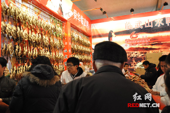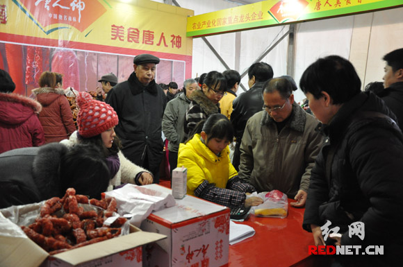 紅網長沙1月12日訊(記者 唐頻輝 實習生 黃娟 攝影 湯紅輝)過了臘八節,吃完臘八粥,年味逐漸濃郁起來,又到了帶著家人“逛廟會買年貨”的時節了。在長沙,一場現代版的“廟會”正演繹著。1月12日,2011中國長沙(賀龍)年貨博覽會在長沙賀龍體育中心開幕。