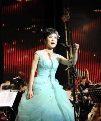 交響樂晚會現(xiàn)場,何瑩唱了一首耳熟能詳?shù)摹犊刺煜聞诳嗳嗣竦媒夥拧。周柏?攝
