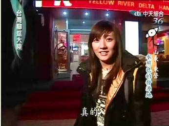 《臺灣腳逛大陸》是臺灣中天電視臺制播的旅游節目,每周五晚間七點在中天綜合臺播出。江蘇行(高建國主持)2003/11/29(六)為首播,主持人眾多。節目內容推陳出新,已拍攝310集,足跡踏遍中國大陸各個省份重要景點。目前該節目來到黃河口城市東營。
