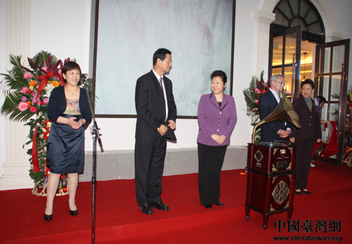 海峽兩岸關系協會副會長張銘清、鄧麗君文教基金會董事長鄧長富等為鄧麗君主題音樂餐廳開業揭幕。(中國臺灣網 王怡然 攝)