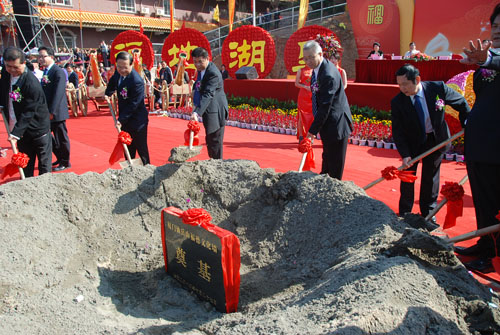 湖里區(qū)委書記李棟梁、福建省海峽文化研究會(huì)會(huì)長(zhǎng)楊華基、臺(tái)灣寺廟金蘭會(huì)會(huì)長(zhǎng)王增榮、新加坡道家總會(huì)會(huì)長(zhǎng)陳添來、廈門市政協(xié)副主席陳昌生先后在開幕式上致辭。海峽兩岸關(guān)系協(xié)會(huì)副會(huì)長(zhǎng)張銘清宣布第三屆福德文化節(jié)開幕并邀請(qǐng)?jiān)趫?chǎng)嘉賓共同推動(dòng)啟動(dòng)桿啟動(dòng)開幕,F(xiàn)場(chǎng)的嘉賓為福德文化墻和海峽兩岸非物質(zhì)文化遺產(chǎn)(仙岳山)展示中心項(xiàng)目奠基儀式培土。