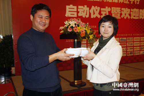 12日晚“全國網絡媒體遼寧行采訪活動”,在遼寧大廈正式啟動。同時也是來自中國經濟網的影子與接待方李顯鵬的生日,這讓兩人既興奮又驚奇。驚喜之余,兩人端起壽面碗,互祝生日快樂!(中國臺灣網 孫金誠 攝)