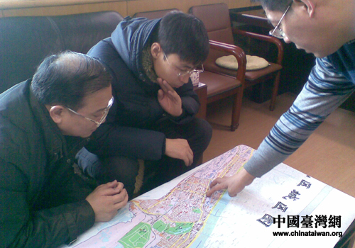 撫順新撫區政府盧副區長向臺灣藍天電腦集團駐沈陽部開發處劉輝課長等介紹南站地區整體改造規劃情況(圖片來源:撫順市臺辦)
