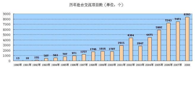臺灣自一九八七年開放大陸探親后,即頒發(fā)兩岸地區(qū)教育交流的若干規(guī)定,而大陸教育部“教育委員會”也有相關(guān)規(guī)定負(fù)責(zé)管理大陸人士來臺教育參訪,并協(xié)助臺灣人士赴大陸的學(xué)校、教育機構(gòu)學(xué)習(xí)、進修、講學(xué)、研究,及與大陸進行教育交流、合作等相關(guān)事宜。近年來,兩岸文教活動交流活動頻繁,人數(shù)屢創(chuàng)新高。依據(jù)統(tǒng)計數(shù)據(jù)顯示,大陸地區(qū)人士來臺從事文教活動由2005年的12,315人、2006年14,775、2007年16,226到2008年的20,546(大陸工作委員會,2009)。依照此一趨勢看來,兩岸交流活動日益趨多,有增無減。