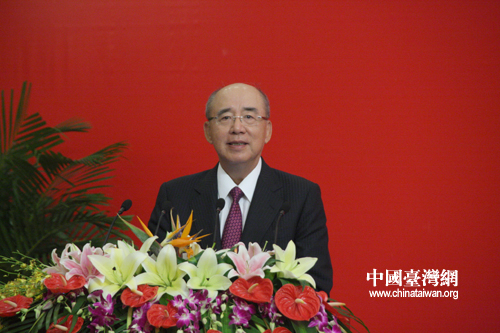 我在三年多以前來過長沙,從臺北到長沙花了六個多小時,而昨天我們只花了兩個小時十分鐘,和賈主席從北京來到長沙時間差不多。這個不同,證明了是短時間兩岸關系和平發展的成果,雙方本著互信雙贏的共識,造就了一系列建設性的成果,也共同見證了兩岸關系朝著和平發展的大方向穩步前進。雖然過程中是有波折,雖然每個步驟有時候顯得舉步維艱,但是我們一直很有信心,因為我們看到兩岸未來的光明前景,更因為我們堅信兩岸關系是誠信的協商,尋求共識,認真落實,創造成果的發展方向是明智而正確的。