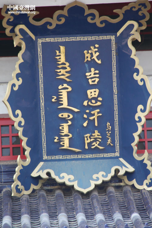烏蘭夫題寫的成吉思汗陵五個大字(中國臺灣網(wǎng) 王文英 攝)