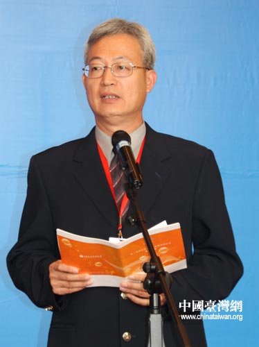 臺灣澎湖縣立湖中學校長葉天賞發表感言。(中國臺灣網 董潔 攝)