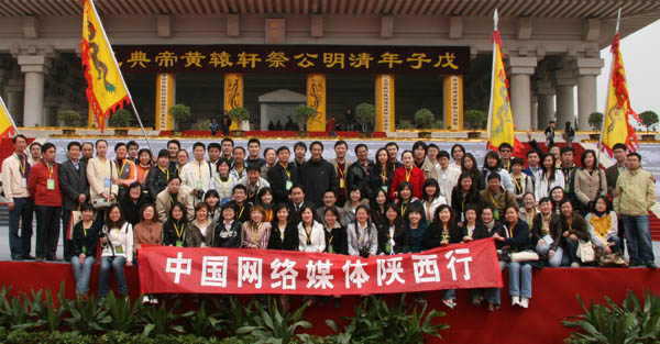 第二屆中國(guó)網(wǎng)絡(luò)媒體陜西行的一項(xiàng)重要采訪活動(dòng),就是報(bào)道清明公祭軒轅黃帝典禮,來自全國(guó)各地的62家網(wǎng)絡(luò)媒體齊聚黃陵網(wǎng)上直播祭祖盛況,見證了來自海內(nèi)外的八千多名中華兒女共同祭拜中華民族的“人文始祖”軒轅黃帝,緬懷我們共同先祖。這次參加祭祀的臺(tái)灣同胞有200余人,親民黨秘書長(zhǎng)秦金生、中國(guó)國(guó)民黨中央評(píng)議會(huì)主席葉金鳳、臺(tái)灣知名人士蔡加福、林德福、全國(guó)臺(tái)灣同胞投資企業(yè)聯(lián)誼會(huì)會(huì)長(zhǎng)張漢文、臺(tái)灣中國(guó)統(tǒng)一聯(lián)盟主席王津平代表臺(tái)灣同胞敬獻(xiàn)了花籃。