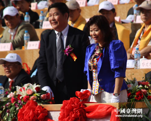 天津市委常委、宣傳部長肖懷遠與中國國民黨中常委朱鳳芝共同為第五屆中國天津媽祖文化旅游節啟幕(中國臺灣網 王曉蕊 攝)