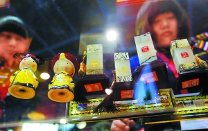 帝后調(diào)味罐、唐三彩手機(jī)鏈、八旗娃娃存錢罐……今天上午,在國(guó)展5號(hào)展館,500余件“北京禮物”首次集中亮相,3500平方米的展臺(tái)搶盡了風(fēng)頭。記者看到“北京禮物”中有被稱為“燕京八絕”的景泰藍(lán)技藝、雕漆技藝等眾多非物質(zhì)文化遺產(chǎn),有代表新北京十六景金、銀章,還有結(jié)合高科技的水立方筆筒、京劇臉譜太陽(yáng)能娃娃等,很多傳統(tǒng)禮物穿上時(shí)尚的外衣后,就獲得了新生命。上午30件獨(dú)具特色的“北京禮物”還從全國(guó)8000件備選作品中脫穎而出,獲得大獎(jiǎng)。