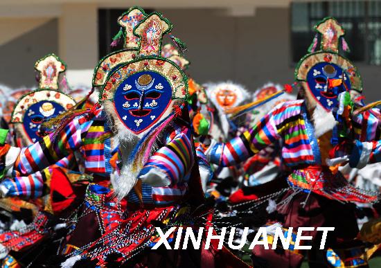 具有600多年歷史的藏戲被譽為“西藏文化活化石”。藏戲是以歌舞形式表現故事內容的綜合表演藝術,與宗教有著深厚的淵源,并受到中原文化和印度文化的影響。藏戲主要是在宗教節日、民間喜慶場合演出。藏戲中使用的面具造型多樣,生動傳神,服飾豐富多彩,具有鮮明的雪域高原特色。