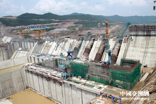 位于蒼溪的亭子口水利樞紐正在建設中,其開發任務以防洪、灌溉及城鄉供水、發電為主,并具有航運、攔沙減淤等綜合利用效益,是老區人民企盼了半個世紀的夢想。(中國臺灣網 楊麗 攝)