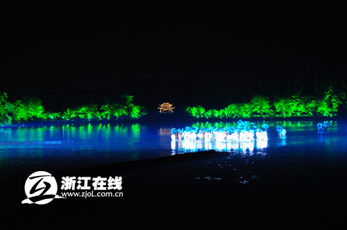 今天晚上,參加由浙江省委外宣辦、省旅游局和浙江在線新聞網(wǎng)站舉辦的“詩畫江南——全國知名網(wǎng)絡(luò)媒體浙江行”采訪團(tuán)就現(xiàn)場感受了一番“印象西湖”的美麗。