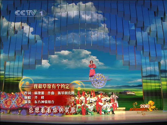 c娛樂訊 2月13日(除夕)晚20:00,2010年央視春節晚會通過中央電視臺面向全球直播,新浪娛樂同步視頻圖文直播。圖為《我和草原有個約定》 。